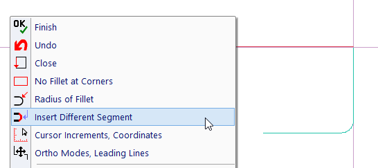 Ao desenhar uma polilinha, é possível integrar segmentos lineares. Opcionalmente (e por defeito), cada canto é arredondado. Também é possível inserir um tipo diferente de segmento. Os ícones que contêm as opções da polilinha, foram adicionados à barra de ferramentas de inserção, ou ao pop-up (chamado pelo clique com o botão direito + esquerdo).