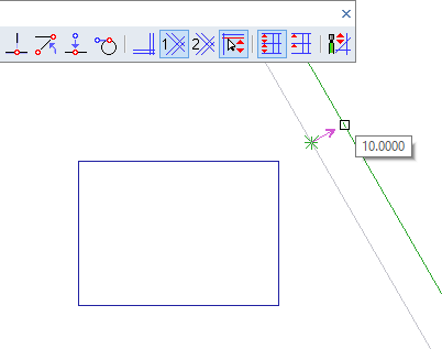 | Vlečení konstrukčních čar kurzorem - pokud je tato volba vybrána, je nová konstrukční čára tažená kurzorem do umístění. Ve výchozím nastavení je krok vlečení nastaven - například v krocích po 1 mm. Vzdálenost od výchozího místa se zobrazí u kurzoru. Pokud je tato volba vypnuta, je vzdálenost nové konstrukční čáry definována vstupy z klávesnice nebo z měření. |