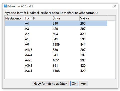 U právě otevřeného dokumentu změní formát. Podle aktuálního formátu dokumentu se generuje rámeček, Zoom formát a oblast pro tisk dokumentu.